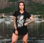 T-Dress Branca de Neve! 🍎✨ O conto de fadas encontra o street style nesta t-dress alongada. Com a doçura da Branca de Neve tatuada, cada detalhe conta uma história moderna. Vista-se com encanto e ouse ser única!